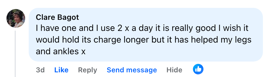 "My husband suffers from lymphedema due to congestive heart failure, and nothing seemed to help his swollen, painful legs. I bought Revivo™ as a Christmas gift, hoping it might bring some relief.The first time he used it, he sighed in relief—his legs felt lighter, looser, and less stiff. After just a few days, the swelling had gone down dramatically. Now, he uses it every evening, and I can see the difference in his energy and mobility. It’s incredible how something so simple has made such a huge impact on his quality of life!"